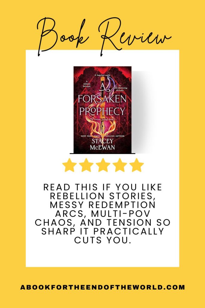 Read A Forsaken Prophecy if you like rebellion stories, messy redemption arcs, multi-POV chaos, and tension so sharp it practically cuts you.