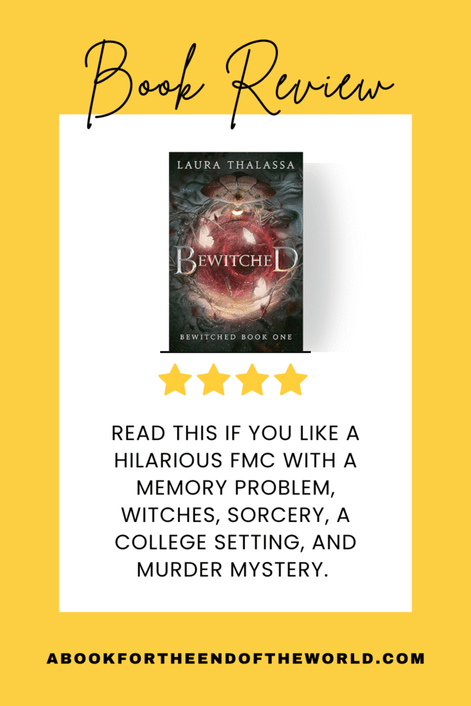 If you are in the mood for reading a hilarious FMC with a memory problem, witches and sorcery, a cozy college setting, and a murder mystery that keeps you guessing, then Bewitched by Laura Thalassa is exactly what you need.