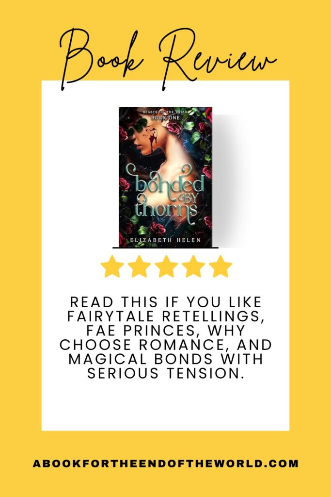 Read Bonded by Thorns if you like fairytale retellings, fae princes, why choose romance, and magical bonds with serious tension.
