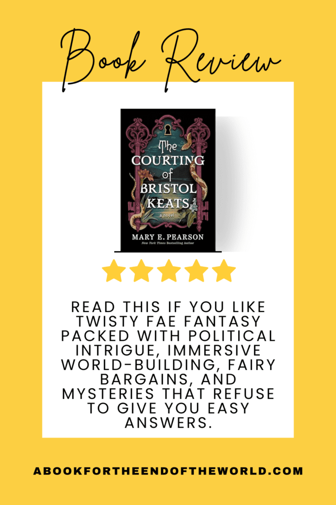 Filed Under: Reviews Tagged With: 5 Star Reads, Adult Fantasy Review, Best Fantasy Romance Books, book review, Fae Fantasy, Faerie Bargains, Fantasy duology books, Fantasy Romance, Mary E. Pearson books, Multi-POV Fantasy, The Courting of Bristol Keats review